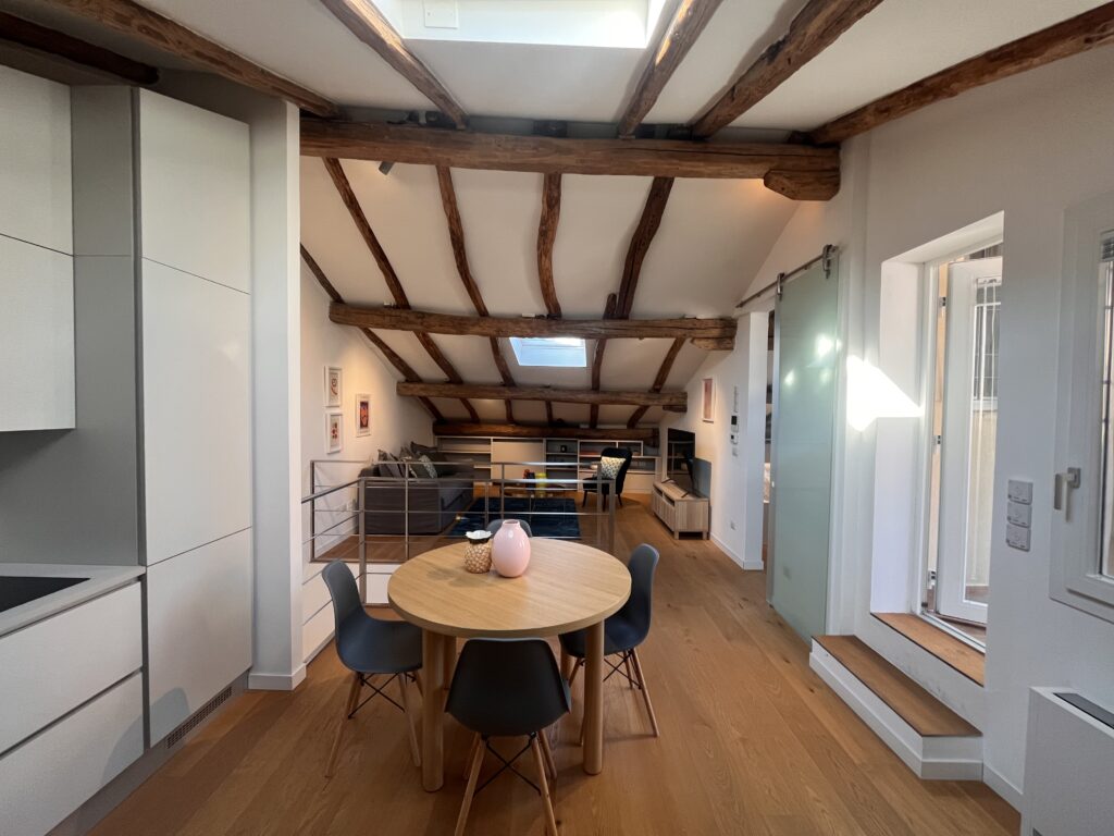 Situato in un contesto silenzioso ed elegante, è la soluzione ideale per single o coppie in cerca di un’abitazione di charme in centro.