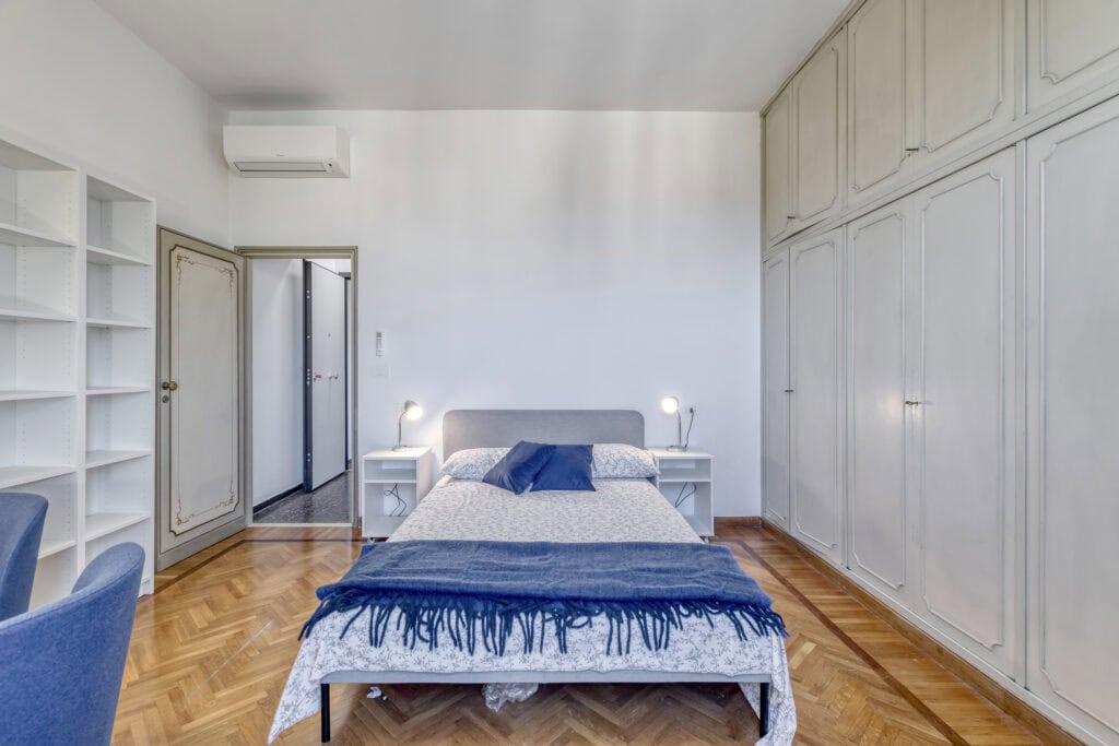 All’ultimo piano di un signorile palazzo in via Castiglione, proponiamo in locazione un’elegante camera doppia indipendente con disimpegno privato interno e bagno esclusivo privato esterno adiacente meno di due meri dalla camera. ideale per studenti universitari o giovani professionisti. La suite vanta una vista panoramica sul centro storico ed è stata progettata per offrire flessibilità, con la configurazione sia come singola sia come doppia. La privacy è garantita da pareti insonorizzate e porta blindata dedicata. Oltre al riscaldamento fornito da impianto condominiale di moderna concezione, all’interno è presente un nuovo impianto di climatizzazione a regolazione autonoma. Gli inquilini hanno a disposizione come spazio comune una moderna cucina abitabile con ampio affaccio sui colli, dotata di climatizzazione autonoma, piano a induzione e zona lavanderia. II canone di 780 euro mensili non è comprensivo di spese condominiali, riscaldamento, acqua sanitaria centralizzata ed energia elettrica, che sono soggette ad anticipo mensile e a conguaglio periodico. Data la natura signorile del contesto, si richiedono garanzie documentabili a supporto della candidatura. CANONE MENSILE: 780 EURO + 100 EURO per anticipo spese. DEPOSITO CAUZIONALE: 3 MENSILITÀ: 2340 EURO